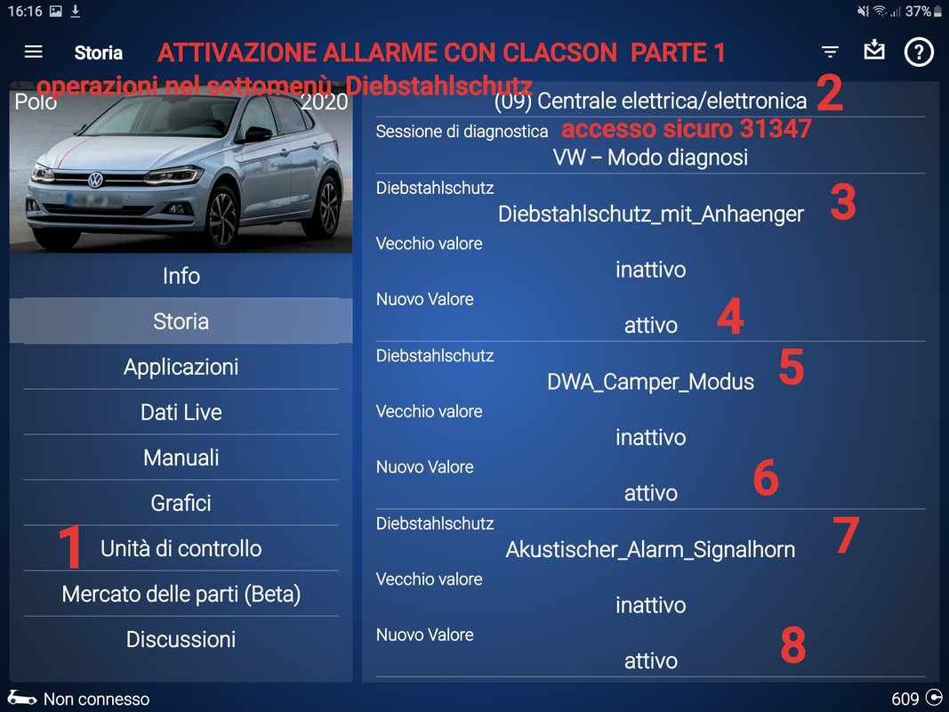 QUESTA CODIFICA NON FUNZIONA SU POLO FINE 2019/2020 POICHÈ VW HA DISABILITATO LA FUNZIONE,DA QUELLO CHE HO CAPITO CI VUOLE UN ADATTATORE ESTERNO.