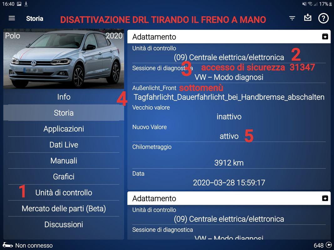 Codifiche per disattivare drl di posizione da infotaiment o freno a mano